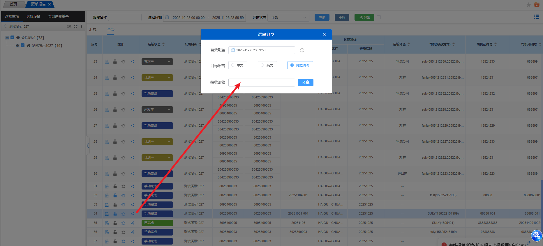 协同功能:分享运单报告