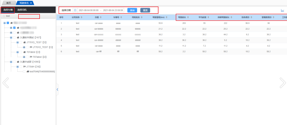 - 设置时间区间:点击日期选择框,配置需统计的驾驶评分时间范围;