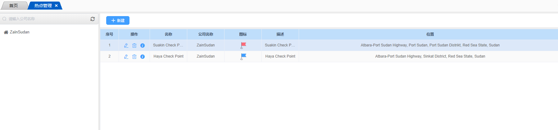 点击热点列表右侧「修改」按钮,进入编辑页面、可调整热点名称、所属公司、图标,或通过地图右键重新定位热点位置;
