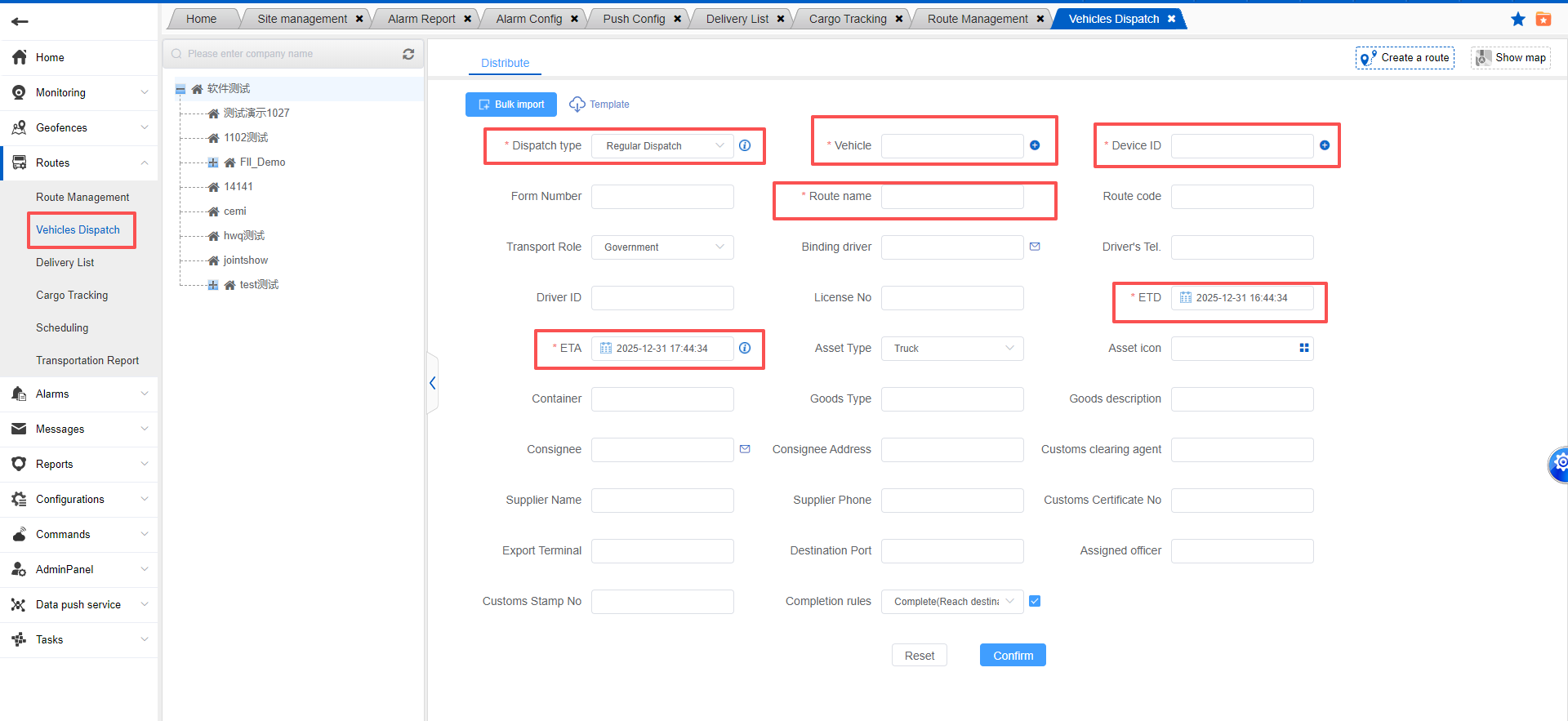 3. Then select the planned departure time and estimated arrival time, and then enter other relevant information to dispatch the vehicle;