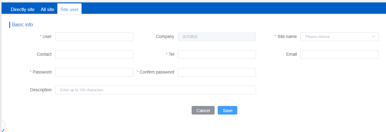 After the page redirects, the area of the site will be roughly determined in the upper right corner of the map and a fence will be drawn. Enter the site name, select the company to which the site belongs from the drop-down menu, and draw the fence. The fence can be circular or polygonal. Except for the required fields, other options can be filled in or saved. Once saved, the site will be successfully added.