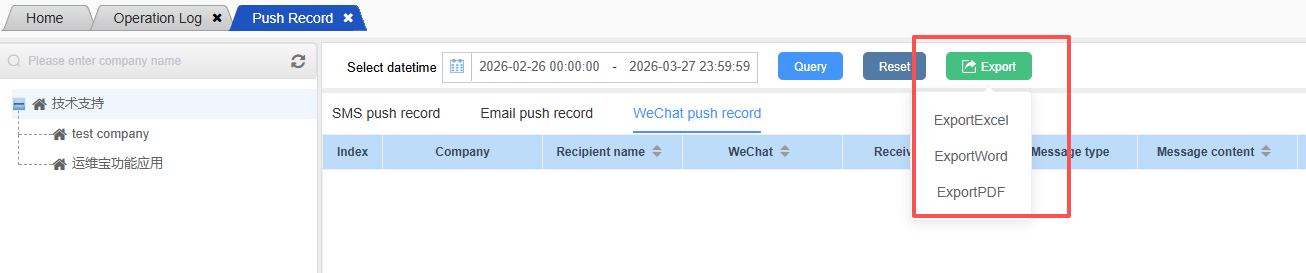 Support export: The records can be exported to Excel, Word and PDF for viewing.