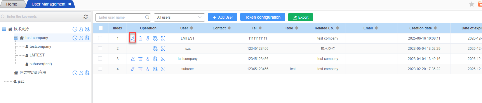 Click the edit icon behind the user to enter the user edit page. After the modified information is saved successfully, the modification is successful, and the modified information of the user will be displayed.