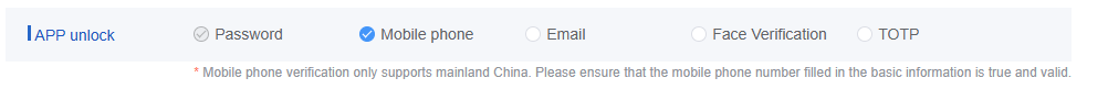 APP unlocking verification; In the “APP unlocking verification” section, you can choose “email verification” or “face recognition” methods, or you can leave all options unchecked (the default setting is password login).