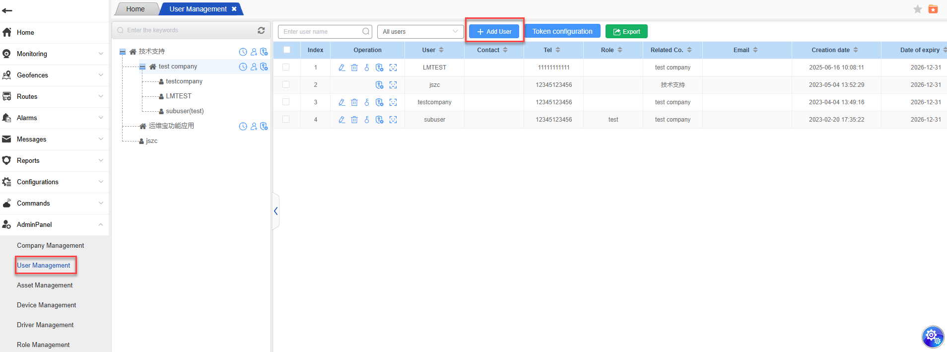 The newly added users here are for creating parent-level users. Click the “Add User” function button - then it will redirect you to the new page where you can fill in the corresponding information and save it.