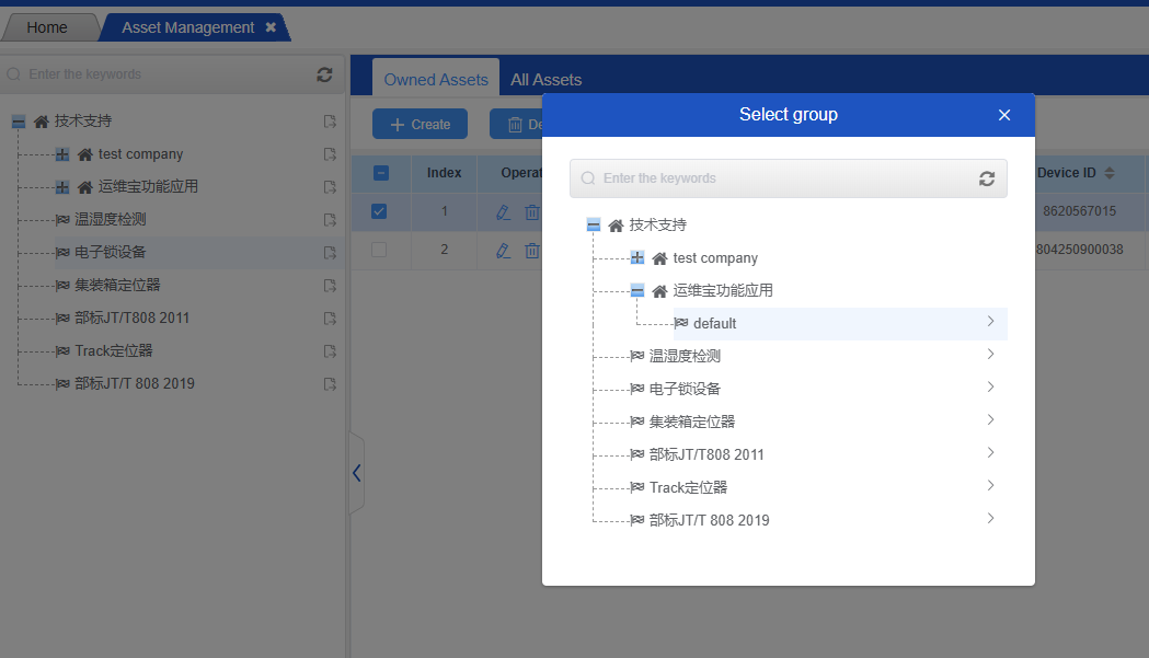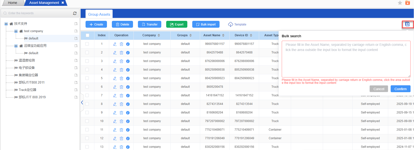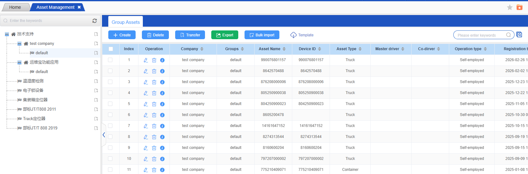 In this module, the asset can be bound to the device and driver, and the assets also be transferred and imported in batches.