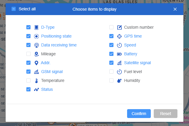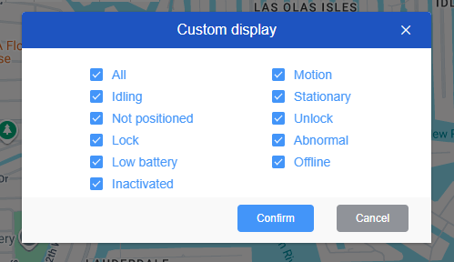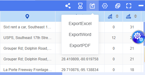 You can select the vehicle icon on the map with box selection, and a pop-up window will display the detailed information of the device. It also supports exporting the information in Excel, PDF or Word formats.