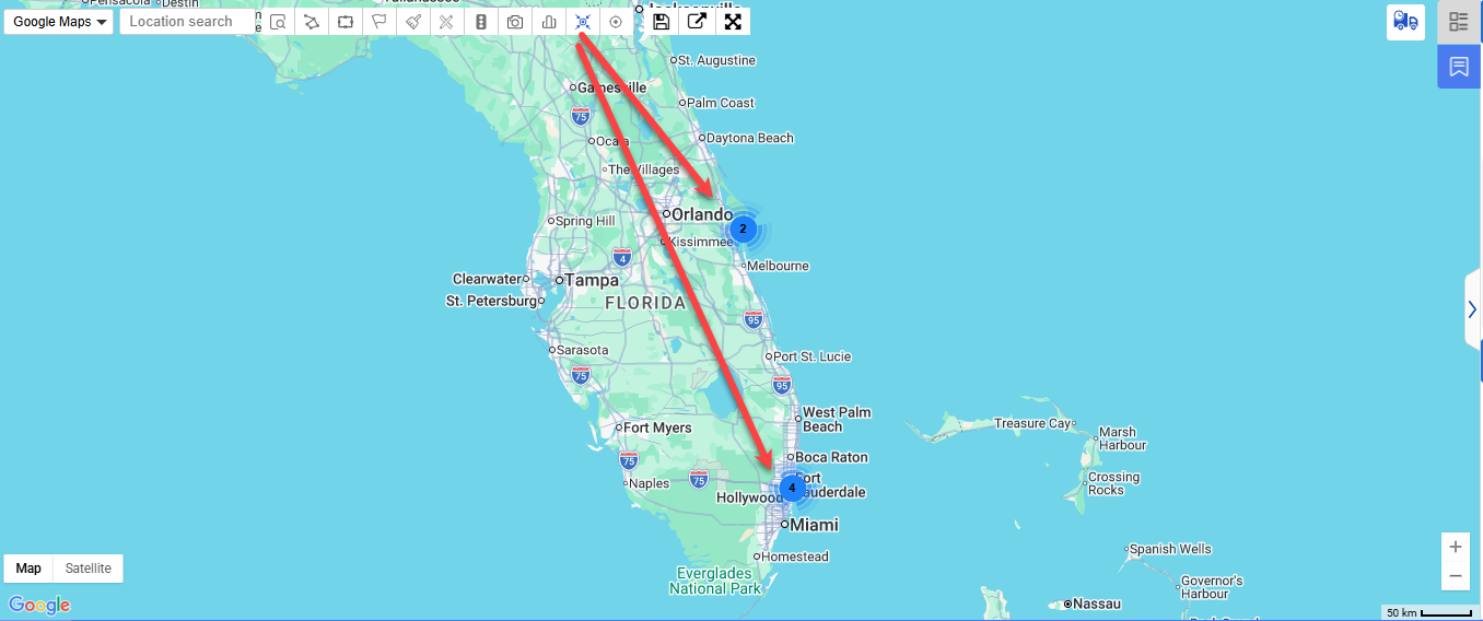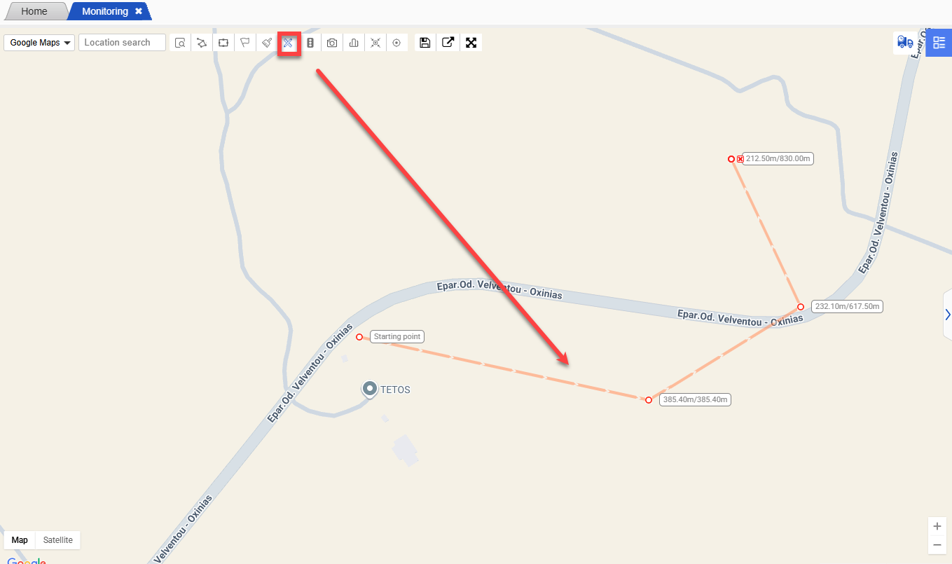 After enabling the Ranging function, simply click on the starting position where you want to measure the distance on the map, marking it as “Starting Point”. Then click on the subsequent locations or the ending position one by one. The map will display the distance of each segment and the total distance in real time.