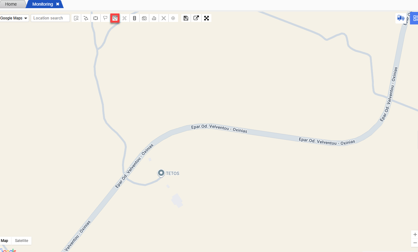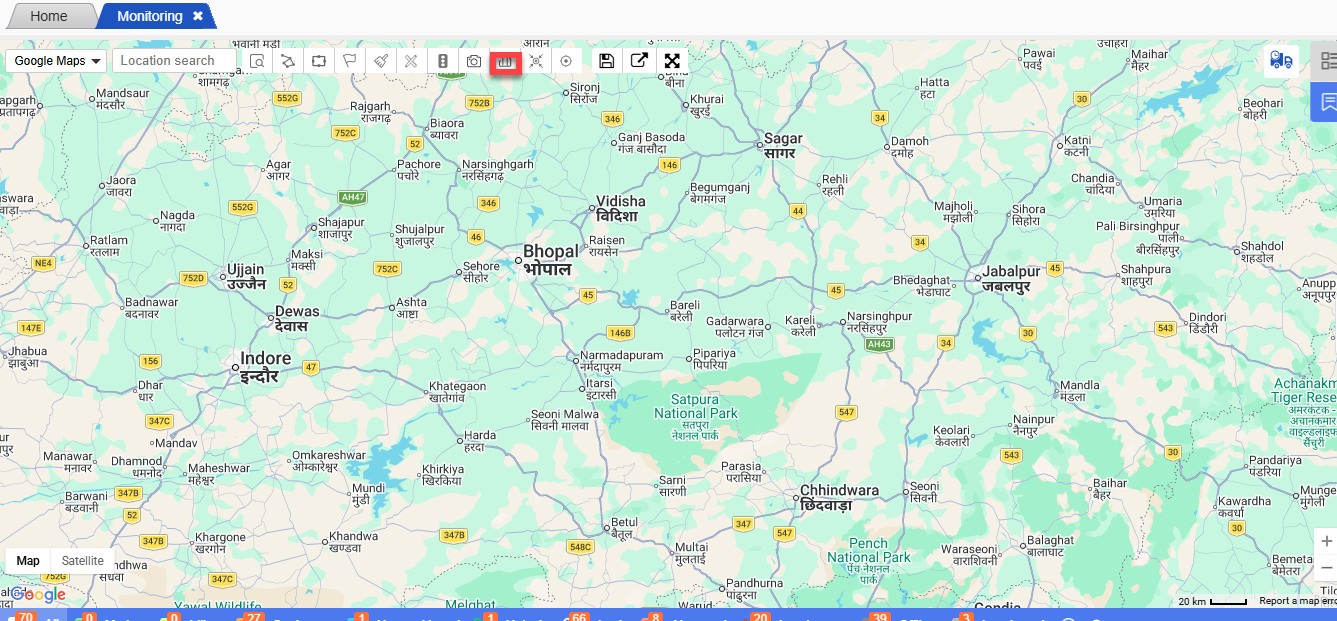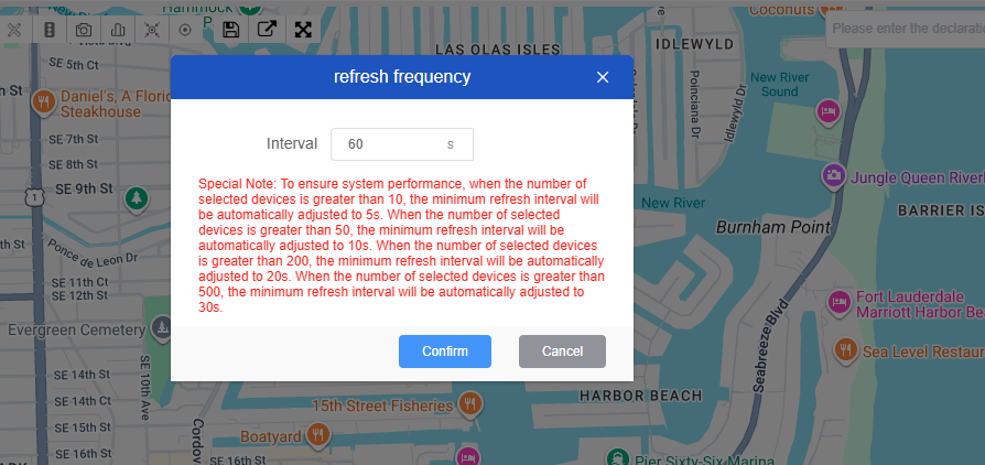 Contains map-related operation icons, such as map fence creation, fence display, hotspot display, clear page display fence/hotspot, distance measurement and other tools.