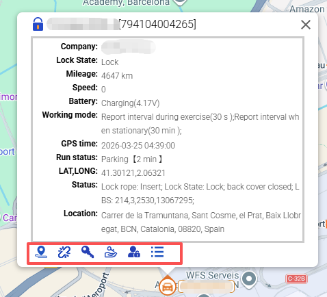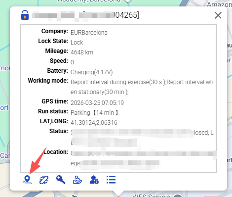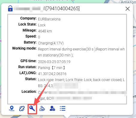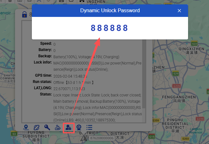 You can click this “Dynamic unlock password” button in the asset information bubble display box in the map display area to check the dynamic unlocking password.