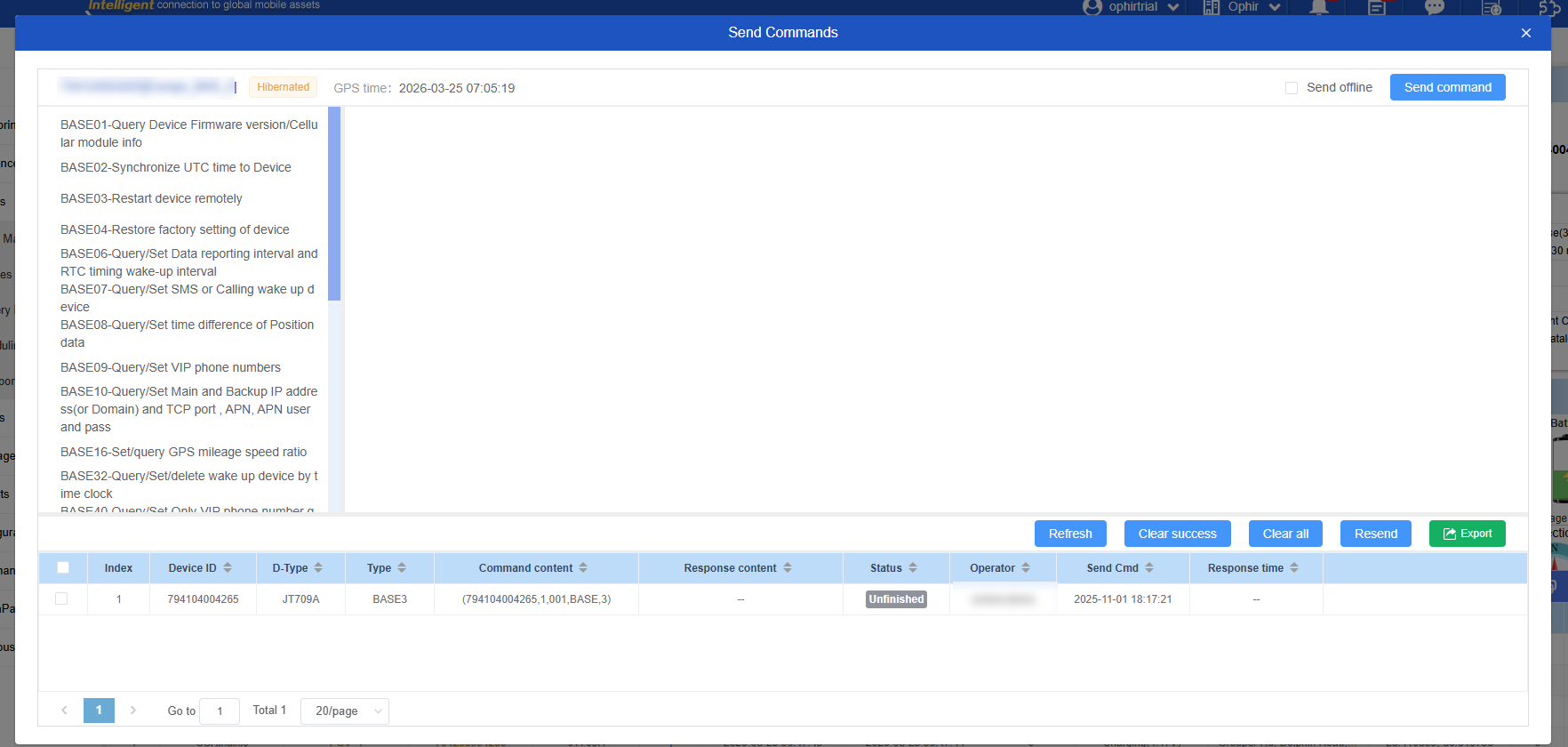 You can click the “More” button in the asset information bubble display box in the map display area to quickly send commands.