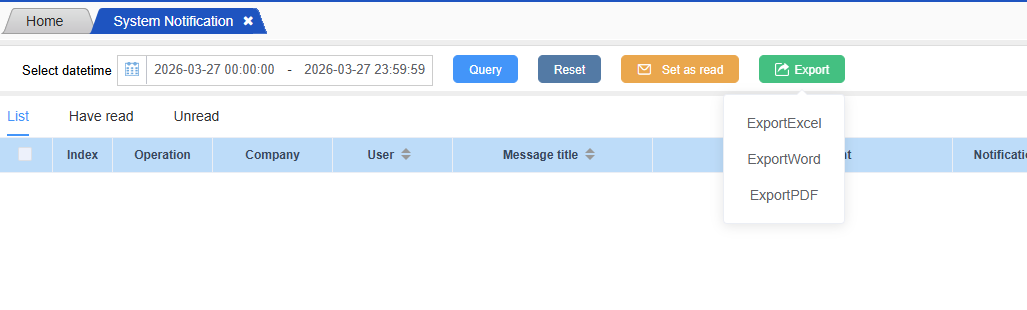 System notifications are used to send some notifications to one, some or all companies. This notification is currently sent by our company and customers can view it in this place.