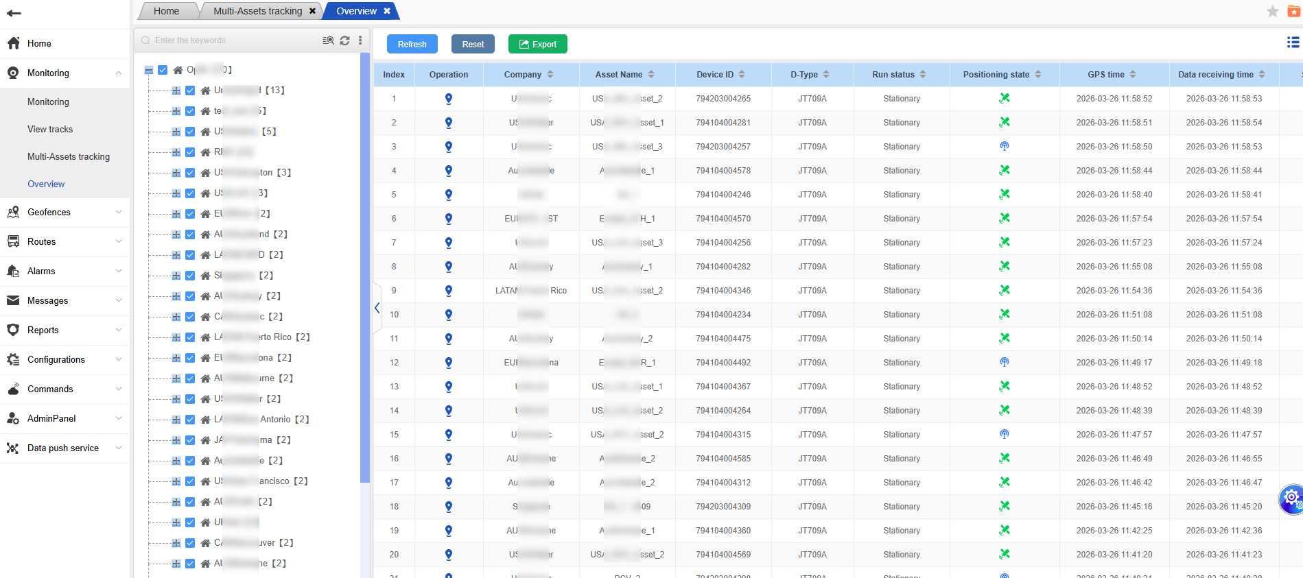 Open the overview table interface, and you can see the real-time dynamic data of the vehicle, such as its location information, lock status, temperature and humidity, oil level, etc.